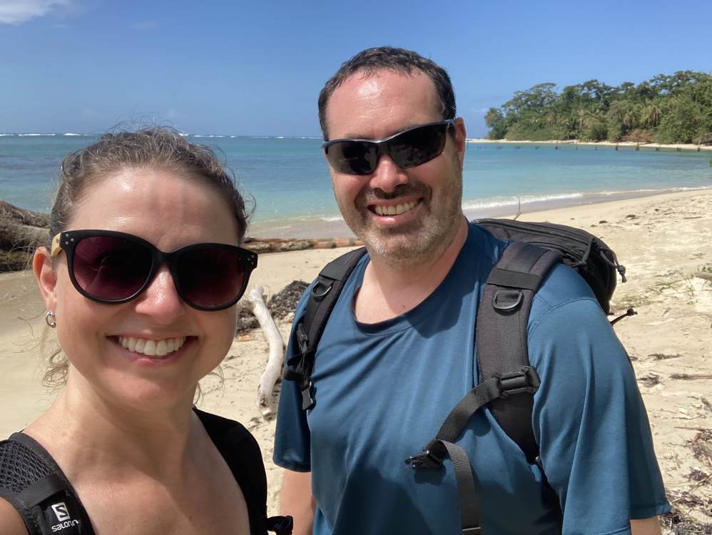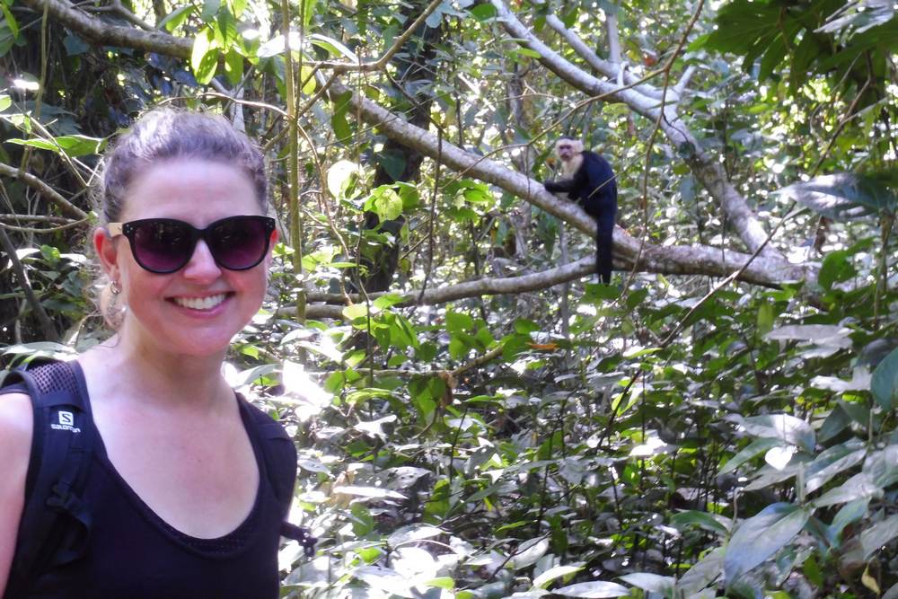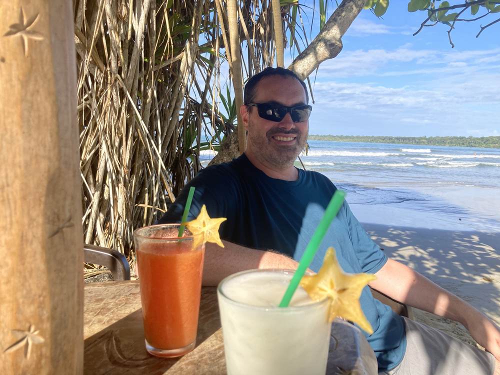 Cahuita is so beautiful. We loved Playa Negra, the black sand beach, and Playa Blanca, the white sand beach. We ate patacones, freshly grilled fish, and tropical fruit, drank mojitos and fresh fruit beverages, and saw so many animals including monkeys, sloths, and lizards.
