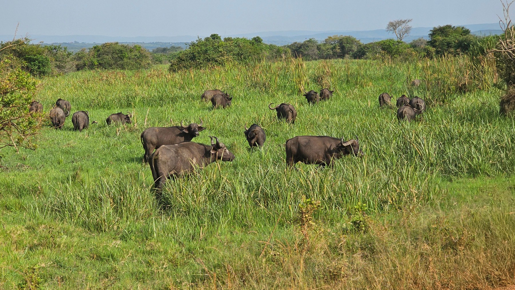 Rwanda's Akagera National Park delivered in full force! Lions in the grass, elephants on the move, buffalo herds blocking our path, a leopard hunting impalas, and then there were the rhinos. We saw Africa's Big Five, plus zebras, giraffes, warthogs, and baboons showing off their rear ends, but nothing topped the moment when two rhinos walked straight towards our vehicle. Those creatures are massive and incredible looking!
