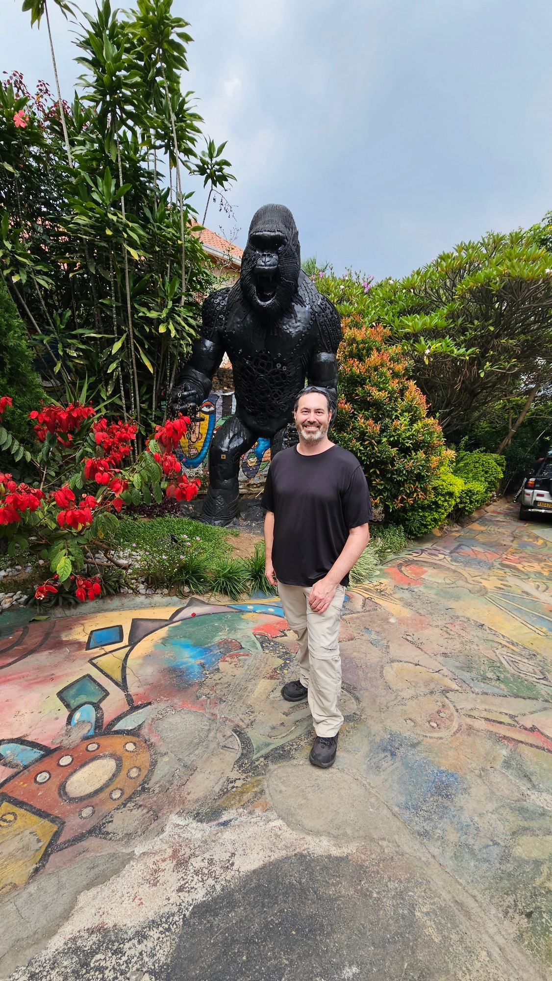 The art scene in Kigali is striking. At Niyo Arts Gallery, the colors and textures of the paintings filled the space with energy. The gallery feels like a true artist collective, with the ground, walls, and ceiling covered in beautiful art, and the rooms filled with canvases of depicting mountain gorillas and families. Outside, the giant gorilla statue, Renaissance, was built from scraps to show Rwanda's growth from a difficult past to an ambitious future.