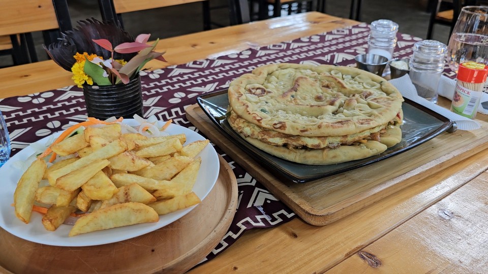 Fortunately, there was a beautiful coffee shop called Azizi Life, where we were able to get some food and extra water. We were debating about sharing the egg chipati sandwich or getting one each. We settled on sharing one and we were really glad we did. It was a huge dish with fries and salad too. All for $5 CAD. The staff was also very friendly and provided some options to us for getting back to Kigali after our hike.