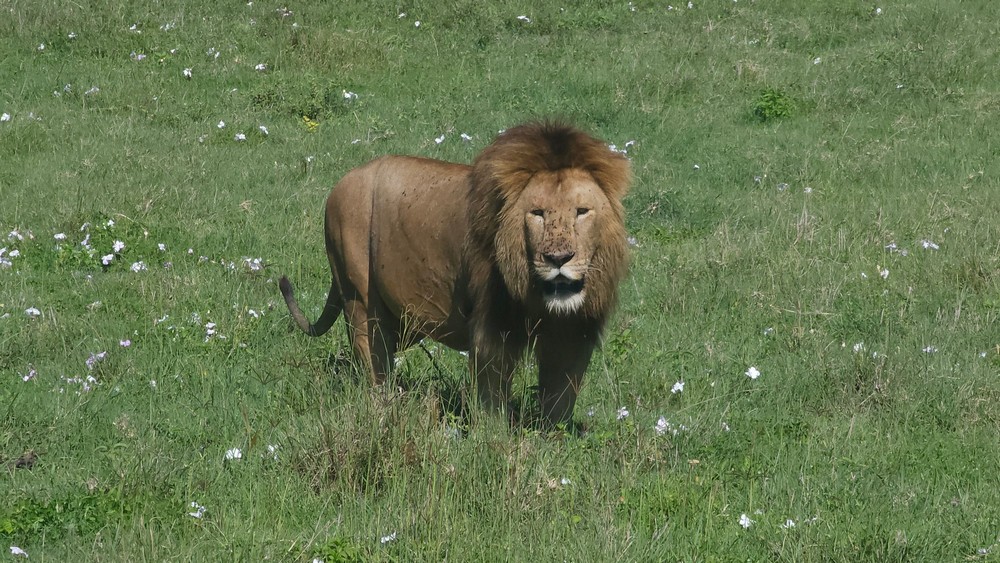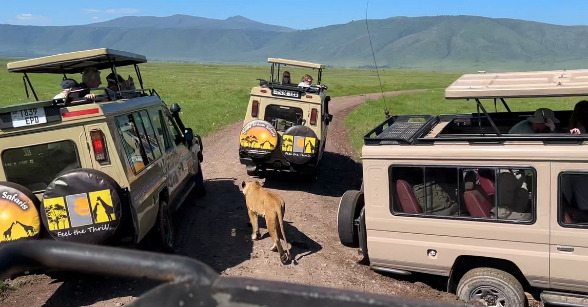 Then, adrenaline spiked again: the lion started walking directly toward us. It passed right in front of our safari vehicle, close enough that we could see every detail of its mane and muscles. It was one of those heart-pounding safari moments you never forget.