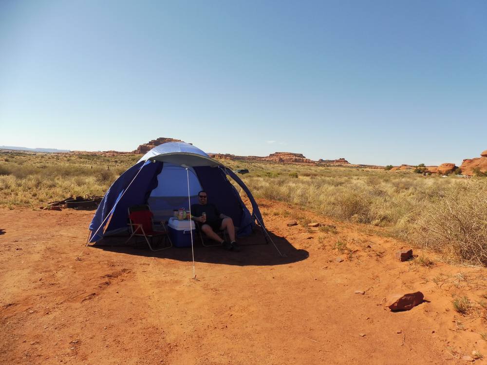 Rain protection: I love a tent with a proper fly and vestibule area. The fly keeps the inside of our tent dry and the vestibule area gives us some extra protection when getting in and out of the tent. It also provides a small area to sit with protection from the rain (and a great sun-shade as well, as we discovered when we were in Utah's Canyonlands). A few tarps with ropes are also great to put up over the picnic table area and give us tons of space to move and sit while staying out of the rain. For when I need to leave the protection of the tarps and vestibule, I wear a Goretex rain coat, rain pants, and Goretex trail runners.