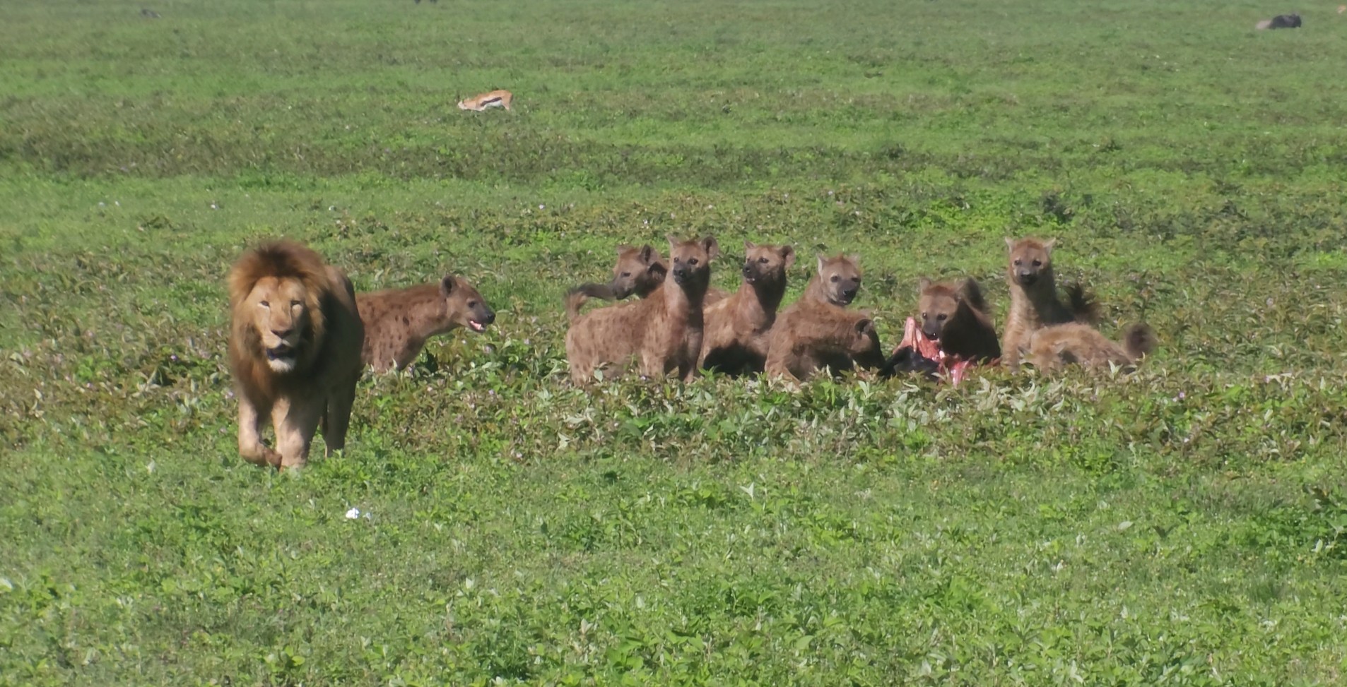 One of the most unforgettable moments was watching a lion with a magnificent mane - straight out of The Lion King, like Mufasa himself - feasting on a gazelle. Nearby, hyenas and jackals circled impatiently, waiting for their turn. The tension was palpable. When the lion finally finished and walked away, the scavengers rushed in immediately, fighting over what was left.
